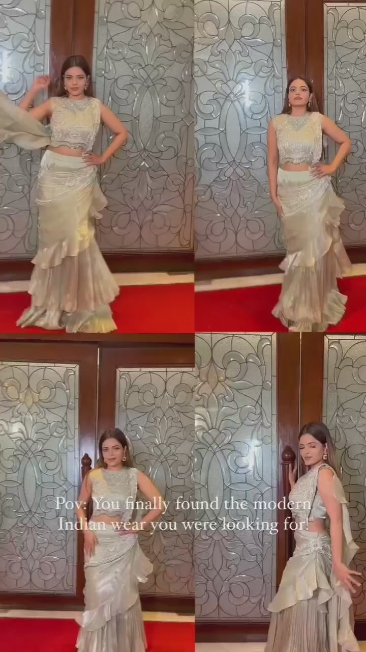 Gold Tissue lehenga with blouse and ruffled dupatta