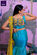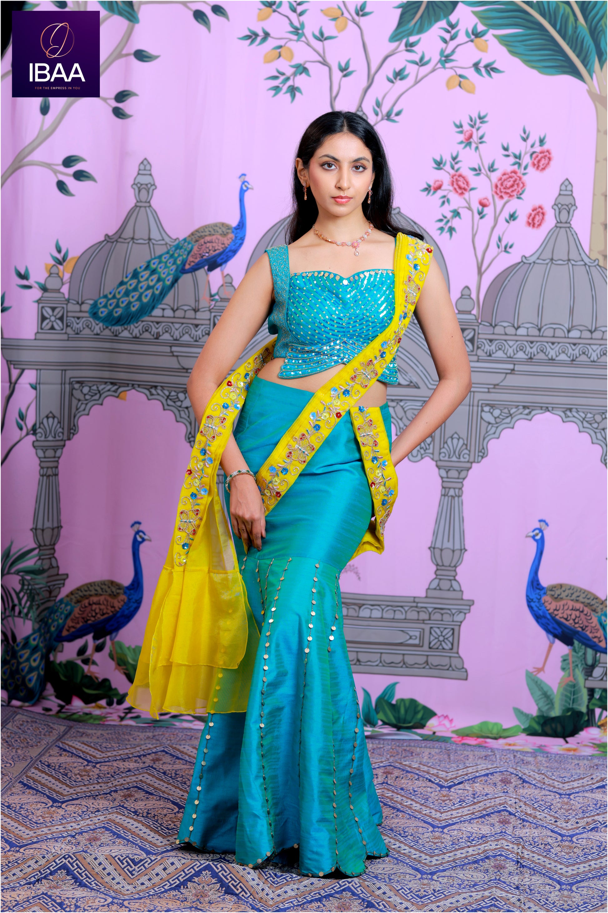 Lehenga with attached draped dupatta and Sleeveless blouse