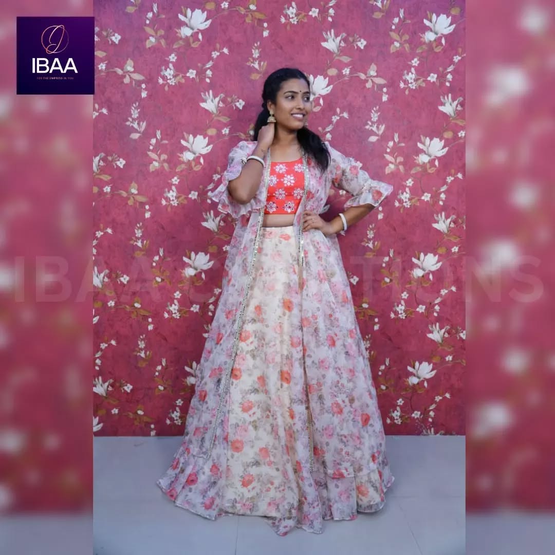 Lehenga, croptop and Jacket