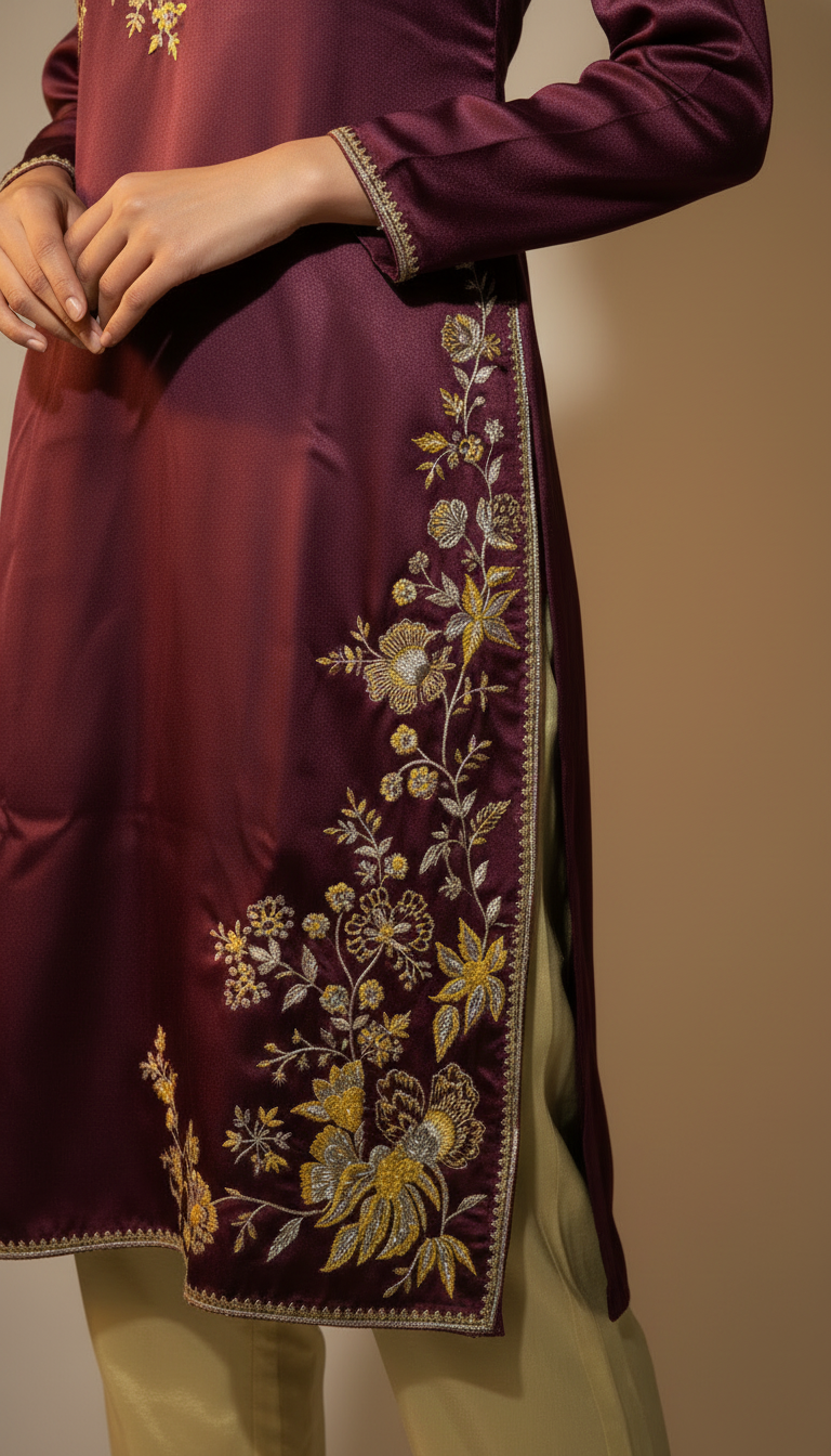 Varnika-Plum Embroidered Kurta Set with Contrast Dupatta